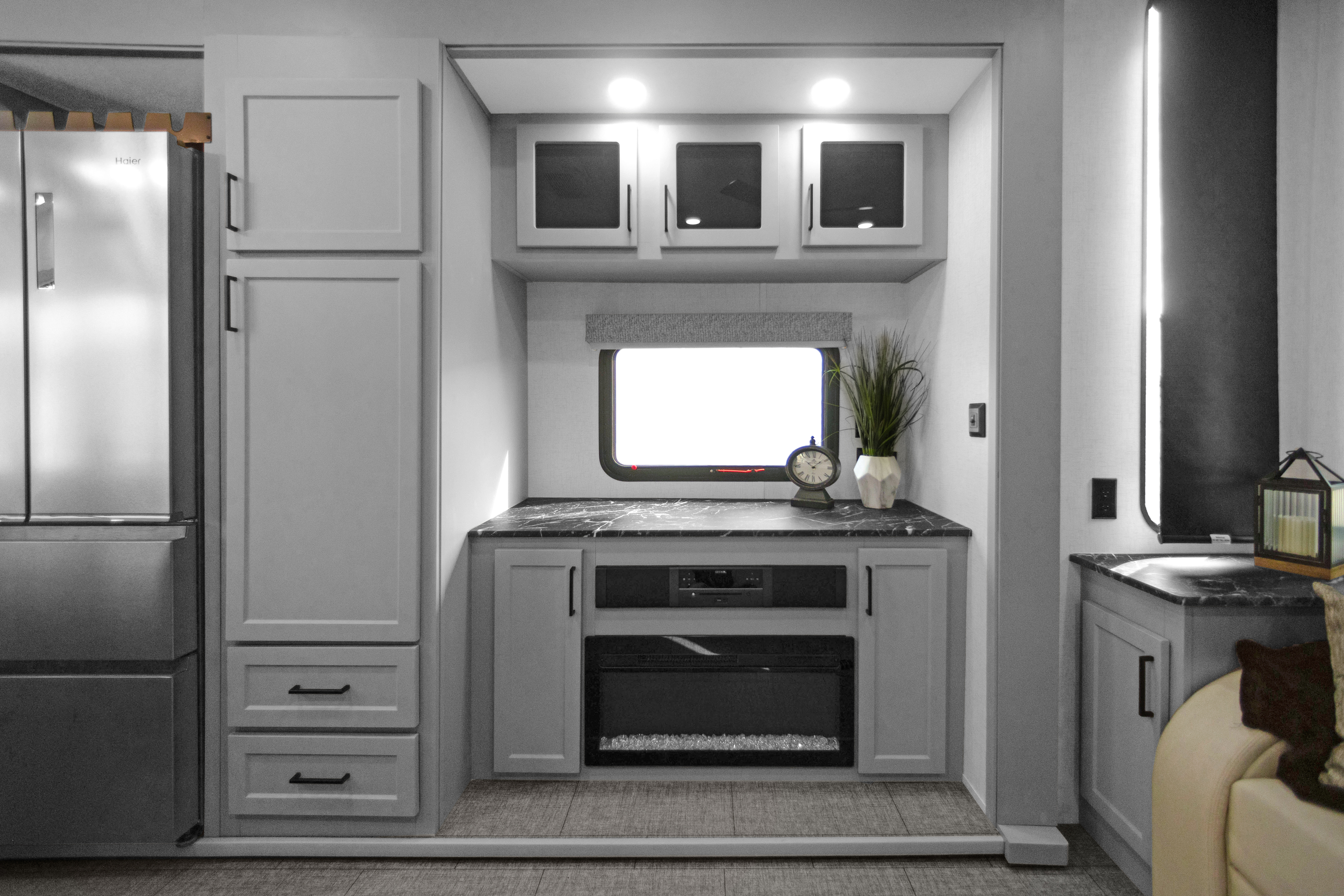 The 391IK1B’s interior blends soft tones with clean, modern textures — highlighted by matte black textures, designer lighting, and plush seating that invites you to unwind.